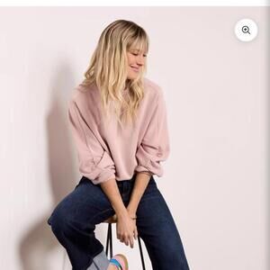 Excellent condition Evereve Mariana Sleek Pullover Crewneck Ruffle Sleeve Blush Pink Women’s size Medium.