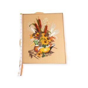vintage crewel embroidery piece "Wooden Decoy" by The Creative Circle Duck