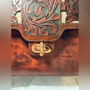 Hand tooled leather crossbody purse