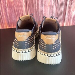 Women’s size 7.5 navy sneakers with tan accents. Ideal for everyday wear. Slip ons. Worn 2xs.