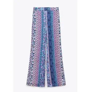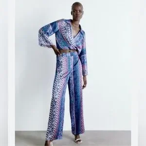 Zara Satin Effect Printed Wide-Leg Pants size Medium