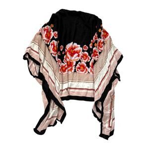 Steve Madden Kimono Wrap - Beautiful Black/White w/ Vibrant Red/Orange Flowers