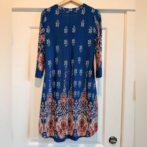 Floral Blue and Red Patterned Dress