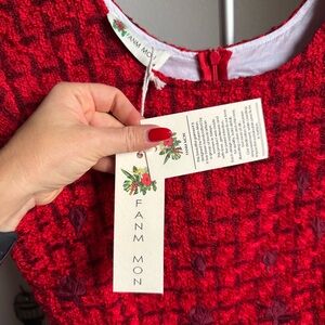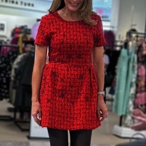 NWT Fanm Mon Samantha Tweed Embroidered Scoop Neck Cap Sleeve A-line Mini Dress