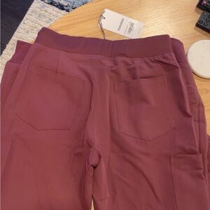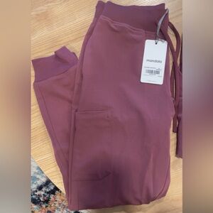 Mandala scrub set in a stylish mauve color. High waisted 5 pocket jogger in XS petite and 1 pocket top in XS. Antimicrobial and water repellent