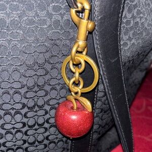 Charming red apple keychain with gold hardware. Perfect accessory for bags or keys.