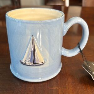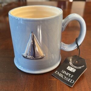 Sailboat Mug The Old Pottery Company Coffee Blue Ceramic Embossed Cup