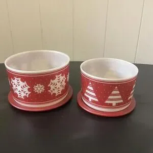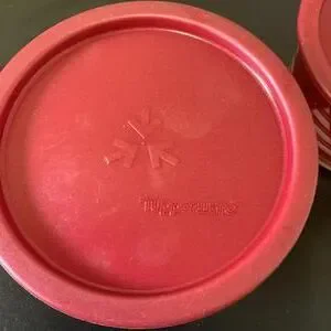 Tupperware One-Touch B Christmas Red Snowflake Canister - Red Lid - #2708 - EUC