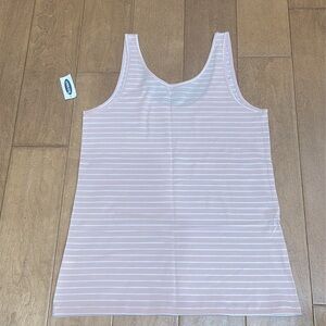 This tank top from Old Navy features a classic combination of pastel pink and white stripes, offering a preppy and modern look.