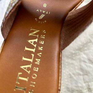 Step into these cute brand new Italian Shoemakers wedge sandals in a size 8! These feature a colorful woven strap and a metallic band. Perfect for adding a touch of fun to your outfits and adding a pop of color to any outfit.