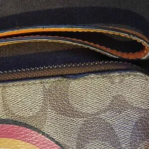 Coach Brown Wristlet with Rainbow Design rare NWOT