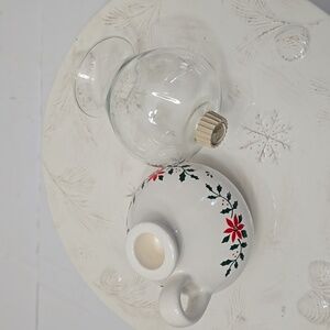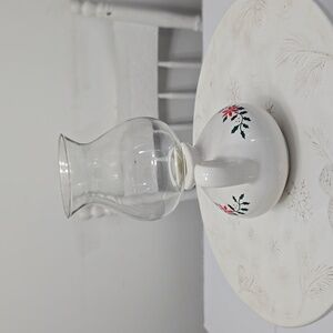 Vintage Holly Berry Porcelain Glass Hurricane Candleholder Taiwan Christmas