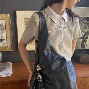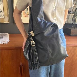 Designer Perez Sanz Elegant Black Shoulder Bag with Tassel