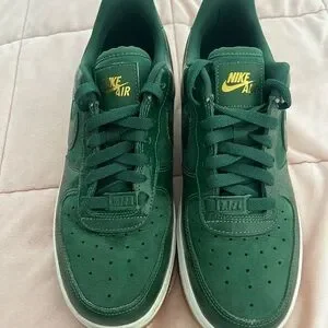 Sleek Nike sneakers in forest green. Gold accents add a touch of luxury. Ideal for casual outings.