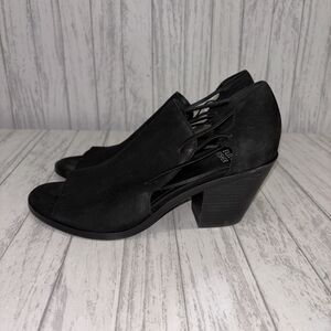 Womens Size 8 Eileen Fisher Nikki Peep Toe Suede Heels Black EUC