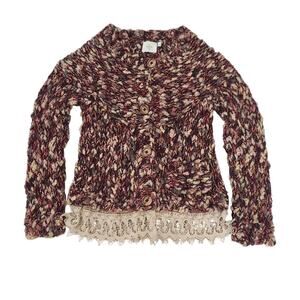 Anthropologie HWR lace trimmed marled Cardigan ladies sweater Size Sm Cozy Wool