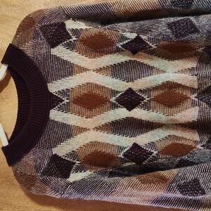 Free People Diamond Days Rainbow Sweater Purple Rust Boho Cotton Wool Mohair Med