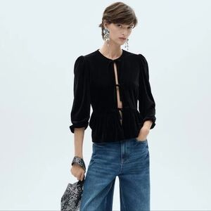 NWTS Mango Velvet Blouse With Bows