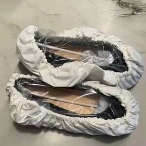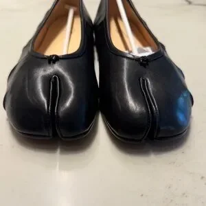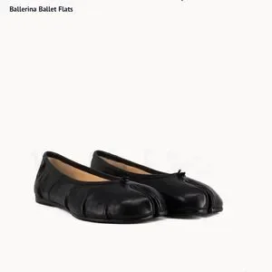 WoodchuckSato Black Leather Split-Toe Tabi Fold Ballerina Ballet Flats
