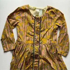 Matilda Jane Paisley Stripe Patchwork Dress Pink Yellow Olive Green Funky Boho - Size 4
