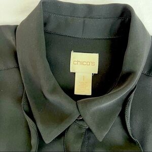Chico’s Black Long Sleeve Ruffle Button Down Blouse.