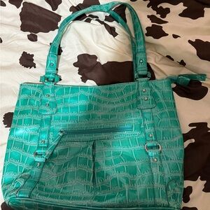 Elevate your style with this chic turquoise handbag. Perfect for any occasion, it adds a pop of color to your outfit.