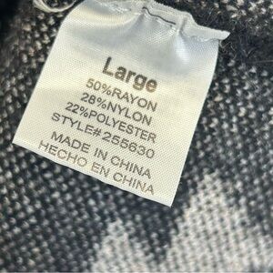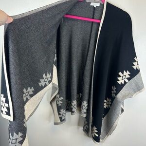 Warm & Cozy Lifestyle Aztec poncho sweater size L. Embrace warmth and style with this elegant black and gray poncho, featuring a chic geometric design. Perfect for any occasion, this piece adds a sophisticated touch to your wardrobe. Minor pilling throughout sweater. Very soft and comfortable.