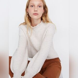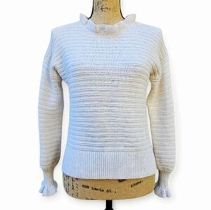 Madewell Ruffle-Neck Light Beige Sweater In Cotton-Merino Yarn, Size XS