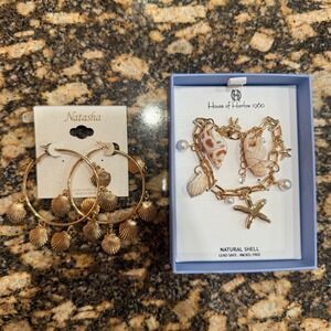 House of Harlow Gold Shell Starfish Charm Bracelet & Natasha Gold Shell Earring