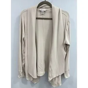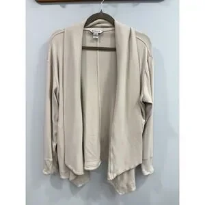 Athleta Open Front Cardigan Petite M Beige Tan Ribbed Knit Draped PM