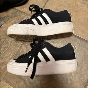 Adidas Black and White Sneakers NIZZA PLATFORM SHOES size 6