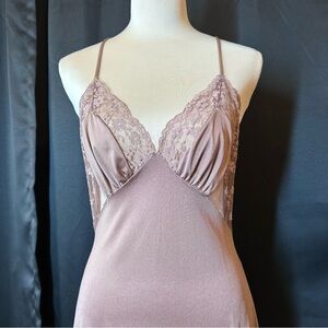 Vtg Blanche by Ralph Montenero Mocha Brown Nylon Full Length Gown Negligée Sz M