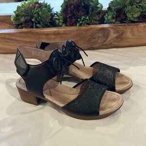 Dansko Women's Liz Sandal Black Leather sandals lace up heeled heel size 40 EUC