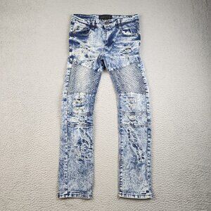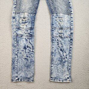 Encrypted Moto Jeans Boy's 16 Acid Wash Blue Denim Pants Stretch Distressed