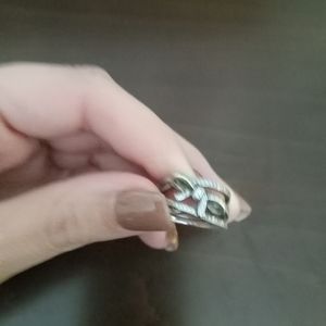 Stylish triple band ring with a bow design. Sparkling clear stones enhance its elegance. Ideal for any occasion.
