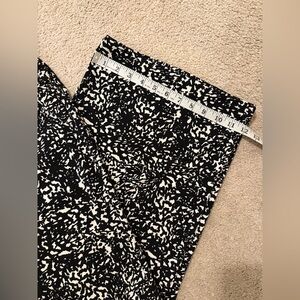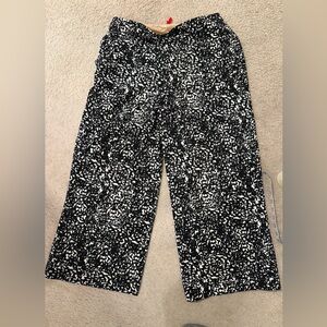 Stylish wide leg pants with a striking monochrome pattern. Perfect for versatile wear. Spanx built into the pants giving a smooth look. The length of the pants were shortened, however, I made them too short and cannot wear them. They are brand new! Size XL