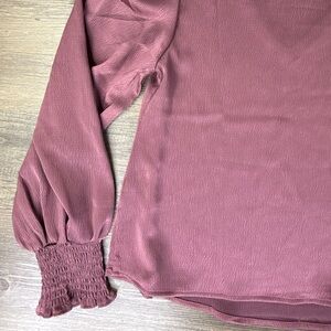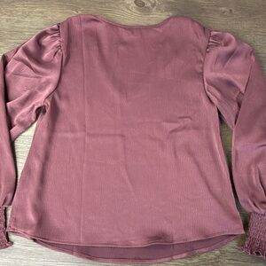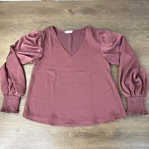 Blu Pepper Women’s Dusty Rose V-Neck Silky Puffy Sleeve Blouse, size Small