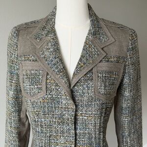 Elie Tahari Gray Tweed & Linen Blazer-Xs/S