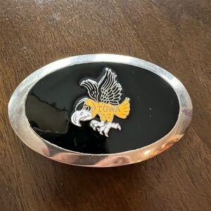 Iowa Hawkeye belt buckle, silver trim, 3” long