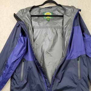 Cabelas Rain Jacket Mens S Blue Full Zip Colorblock Nylon Hooded Outdoor
