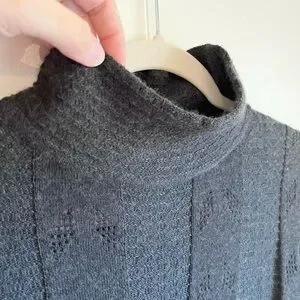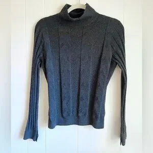 Neiman Marcus Grey Mock Neck Lace Knit Merino Wool Cashmere Silk Sweater Sz Med