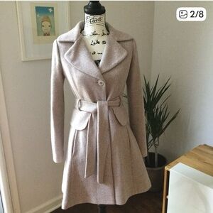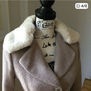 Stylish Belted Coat in a Gray & Pink Wool-blend Tweed with Faux Fur Trim (removable) by Jessica Simpson.