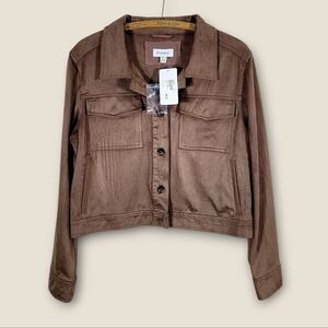 NWT EVEREVE Romy Jacket Faux Suede Cropped Chestnut Brown Medium NEW