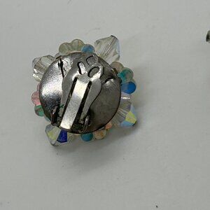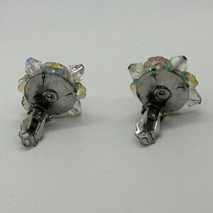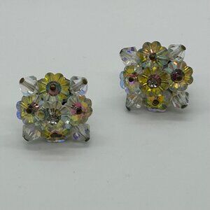 Vintage Aurora Borealis Earrings Crystal Flower Cluster Clip-On 1950-1960s