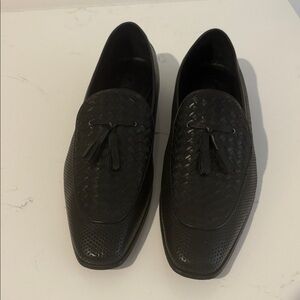 Black handmade intrecciato, tassel, and dotted leather loafers- WELL MADE