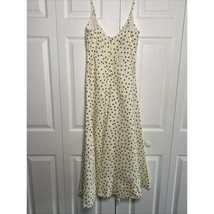 Cara Cara Womens 8 Ivory Linen Dress Polka Dot Maxi Dress Luxury