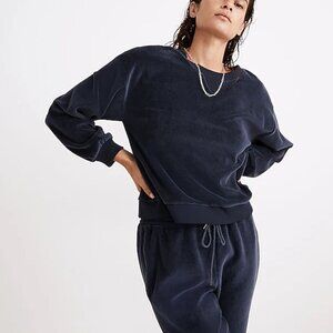 Madewell MWL Navy Blue Plush Velour Crewneck Sweatshirt