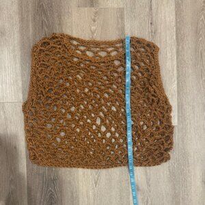 Brown Open Knit Mesh Handmade Sweater Vest Layer M