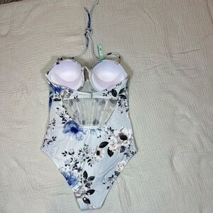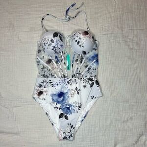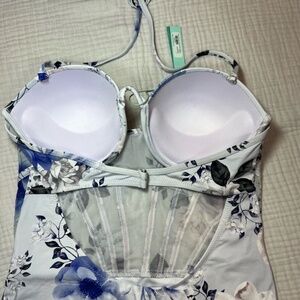 Fashion Nova Swim Summer Romance Corset One Piece Swimsuit White Floral Halter Ties Underwire Padded