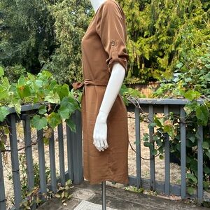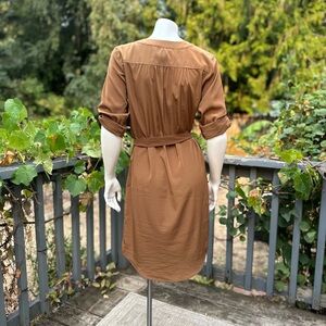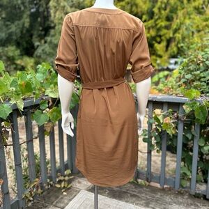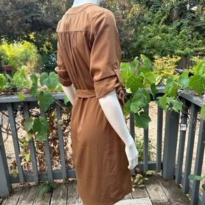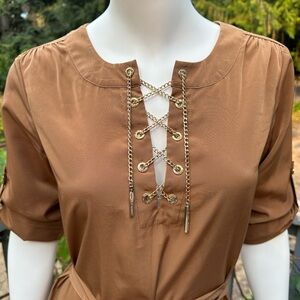 Michael Kors Chain Lace-Up Belted Shirt Dress – XS (Camel / Saddle Brown)